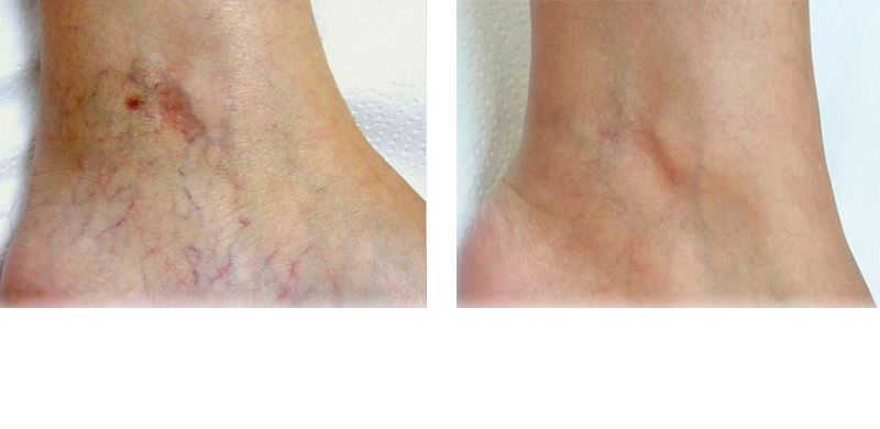 Treated veins may darken slightly before fading over one to three weeks as the body reabsorbs them.